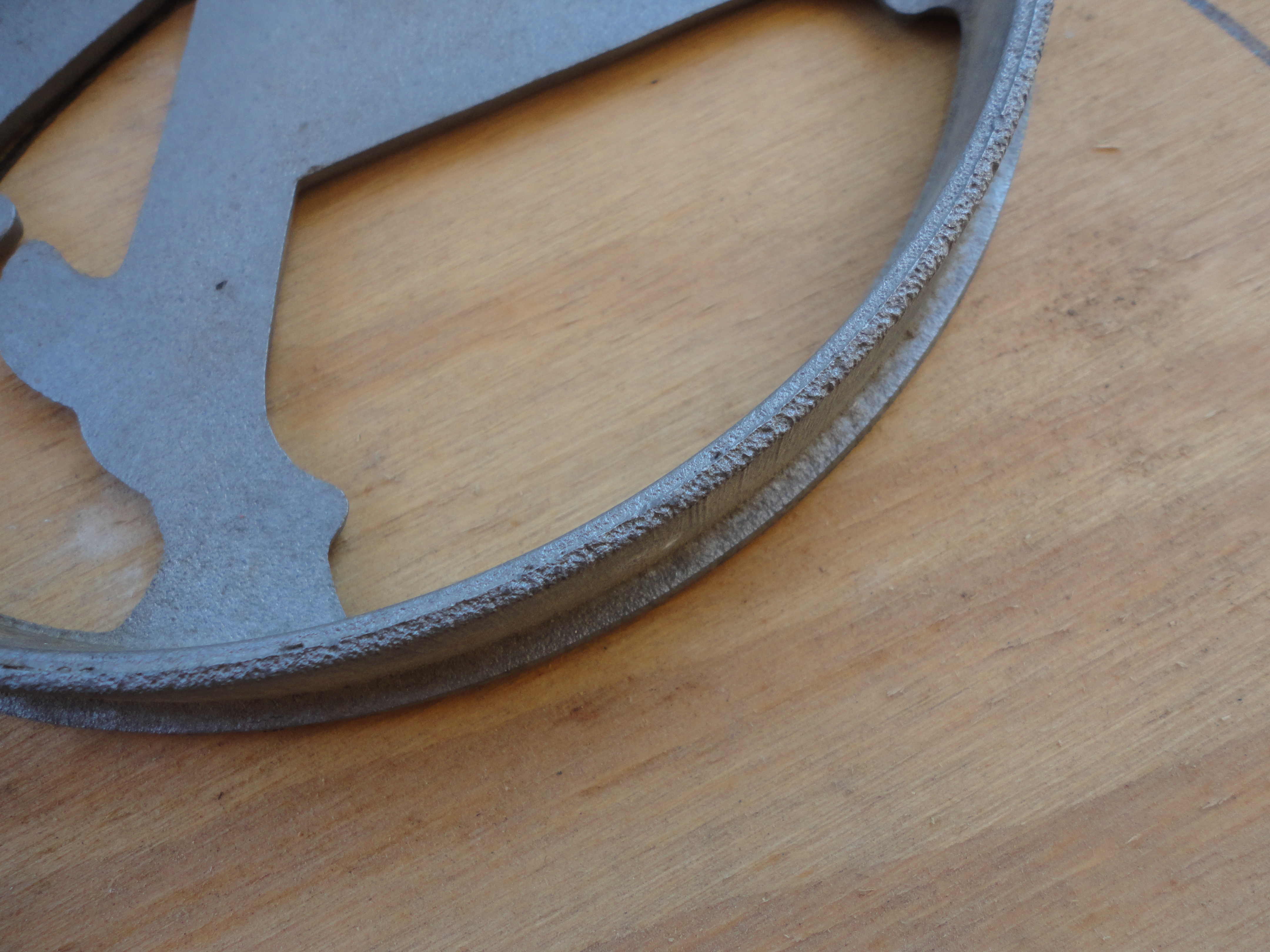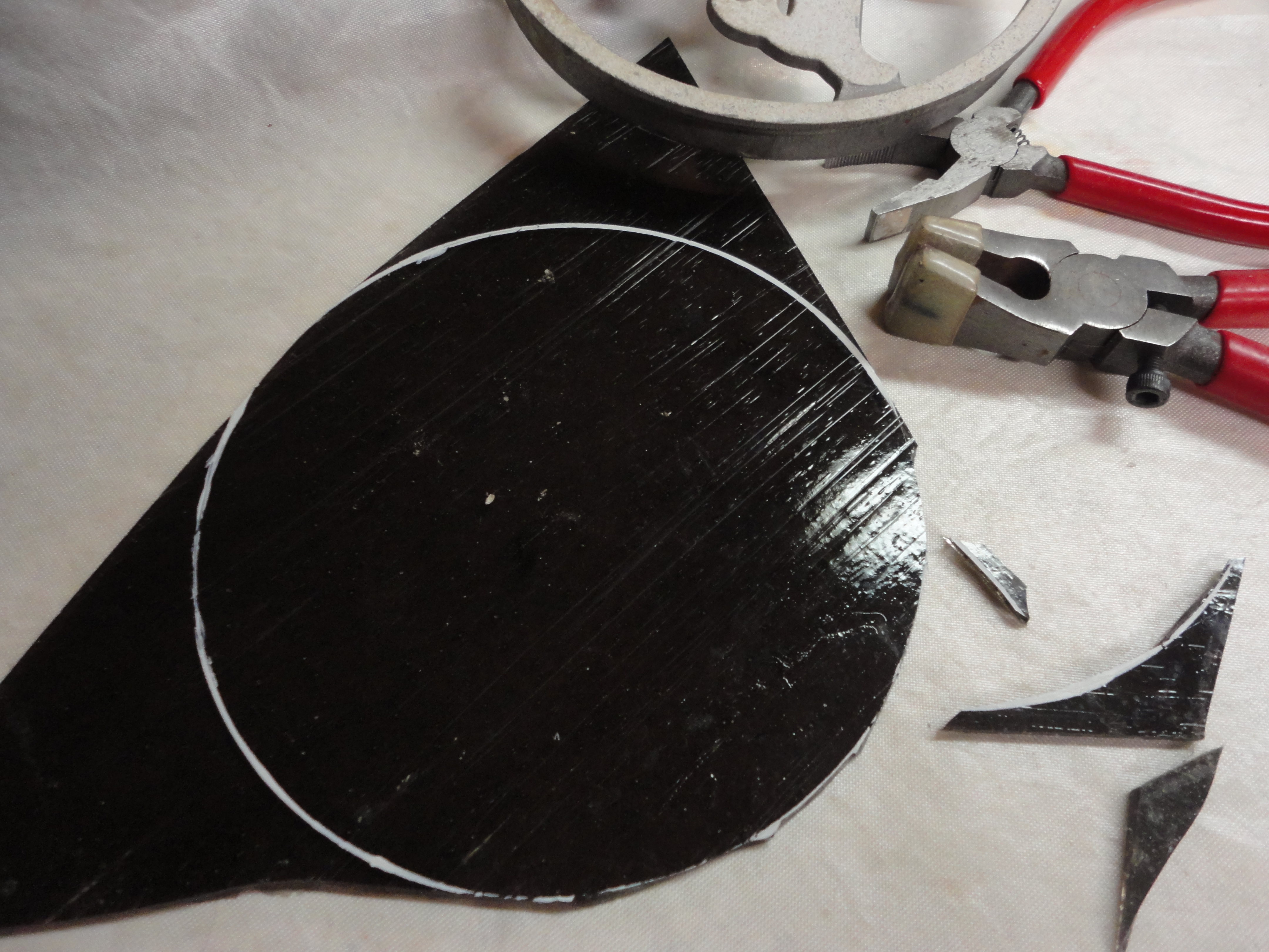 We began by tracing the inside rim of the aluminum piece on 1/2″ plywood, and cut it out with a band saw.