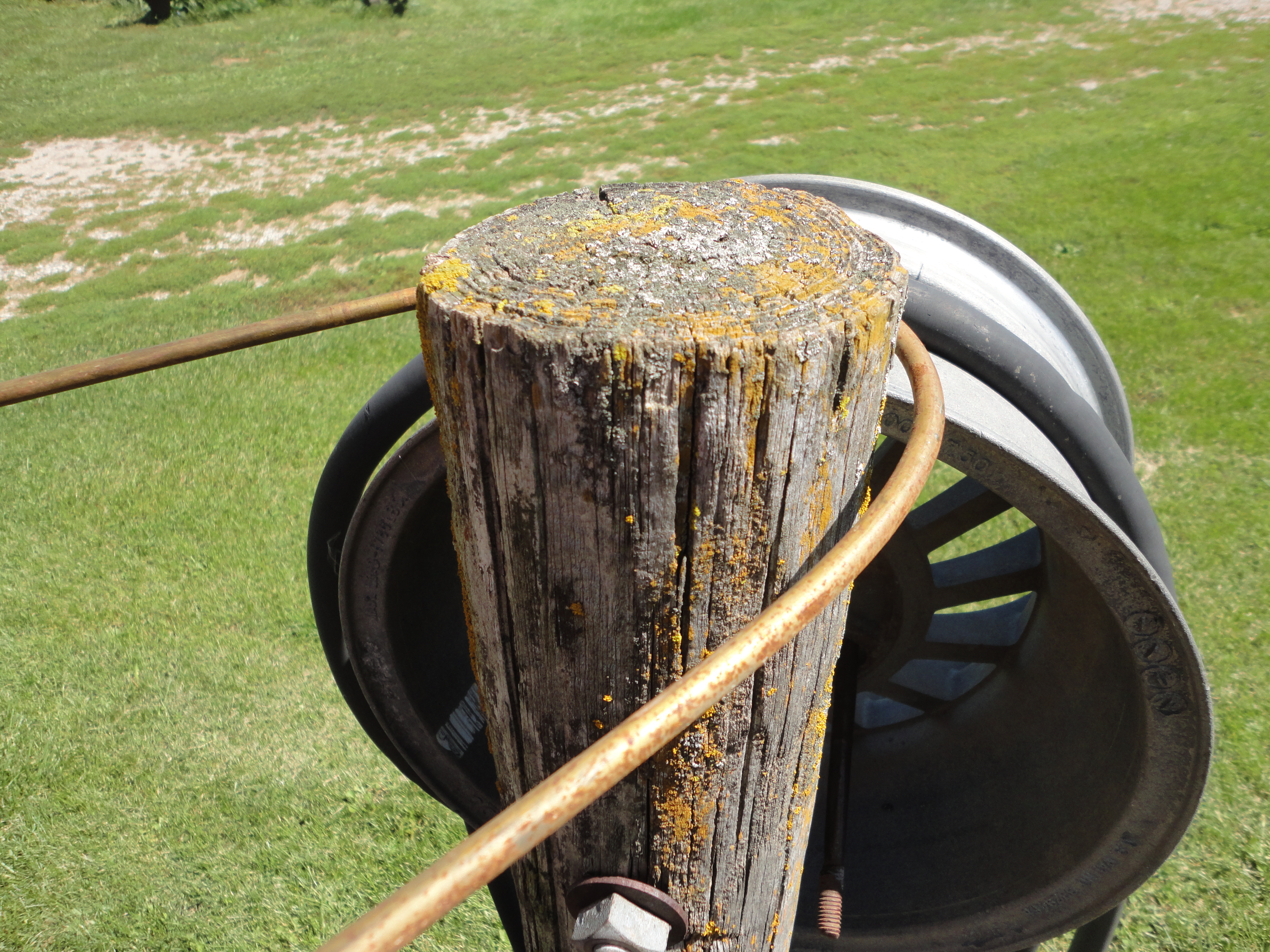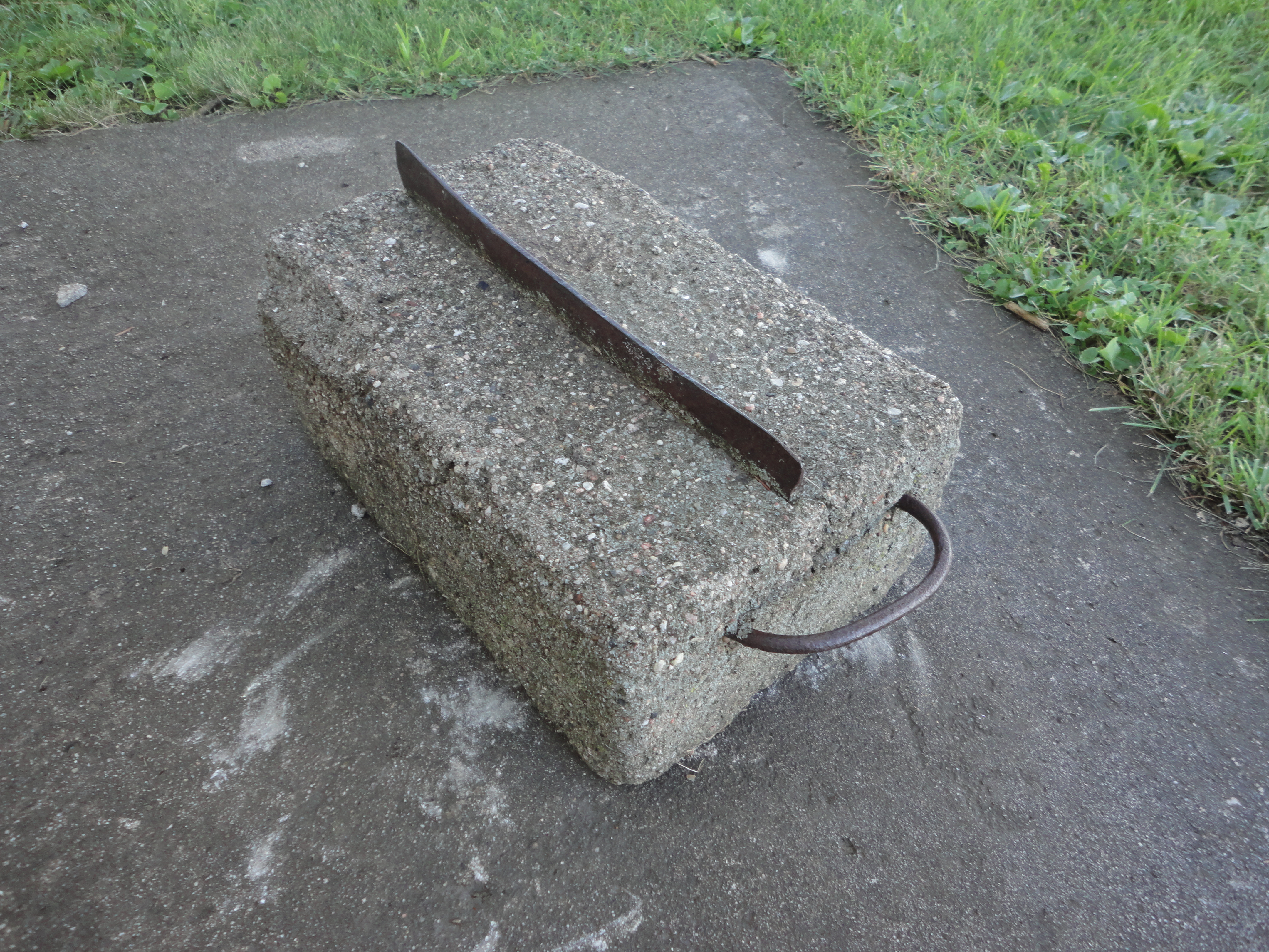 It found it’s way here in a load of salvage long before our arrival. It has scraped many boots and shoes, propped boards to be painted, secured papers, and dog leashes. No one ever gave it much thought until we were trying to wipe mud from our shoes, in wet grass, before entering on the other side of the house. That’s when I said, “We should make one of those mud scrapers for over here.” My husband replied, “Wouldn’t take much, just a box of concrete and a piece of steel.” It took me a minute to absorb…. “Hey! I think I got something we can use!”