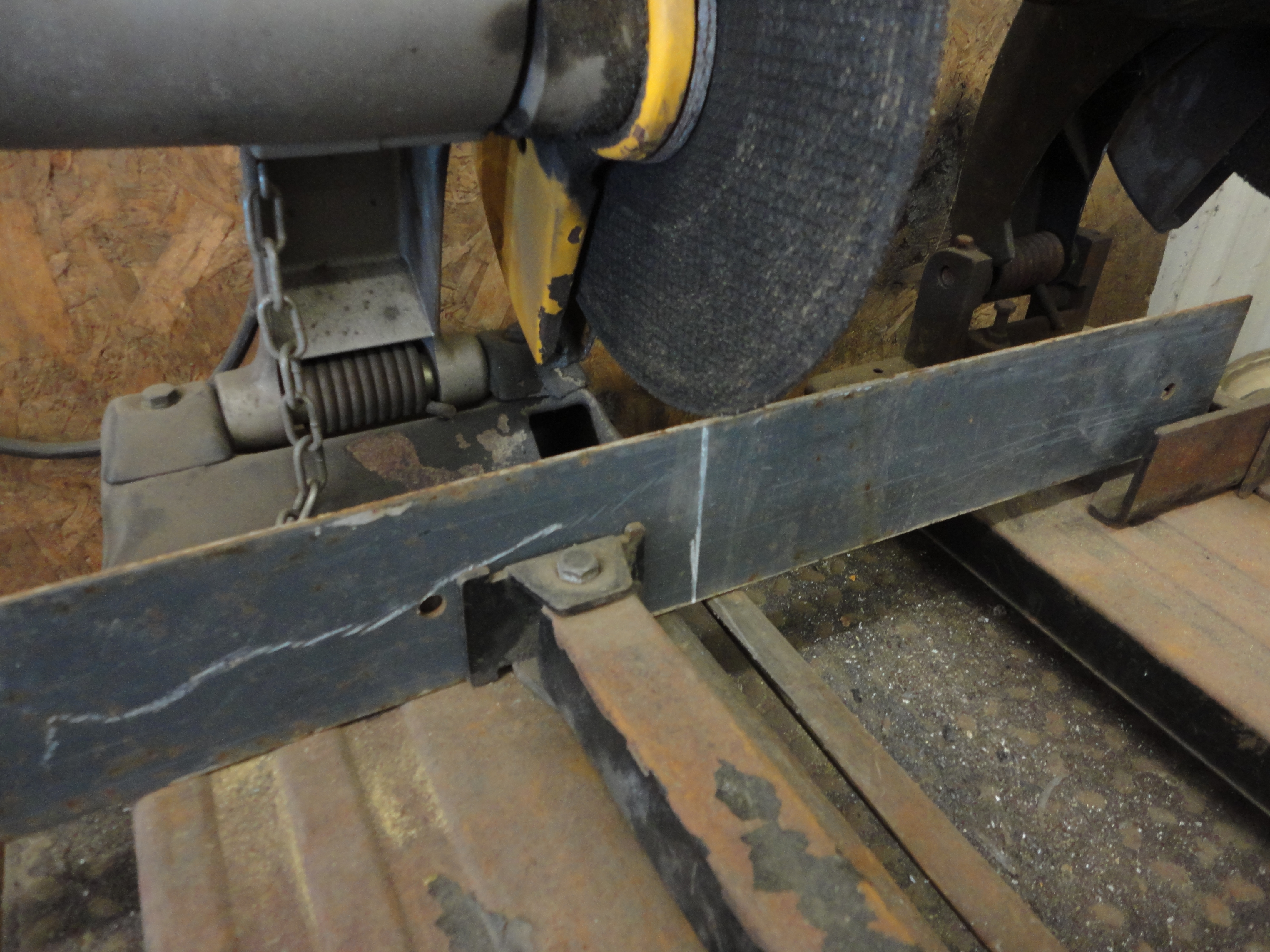 With a chop saw, or hack saw, cut a scrap piece of 1/8″ thick steel. Ours was 3″ wide and approximately 13″ long.