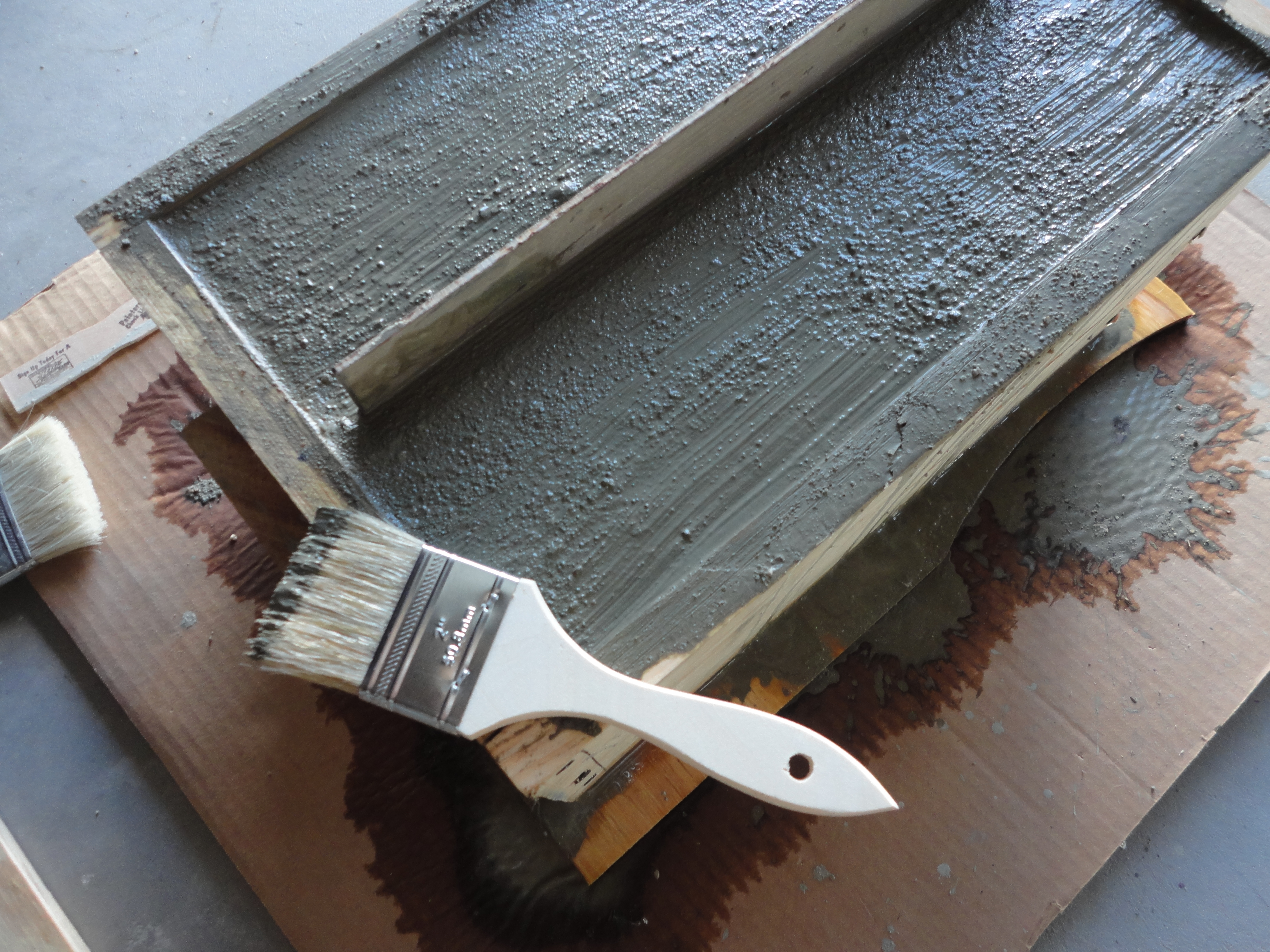NOTE: Before mixing concrete, you may want to spray and prepare a few small containers or molds to quickly use up any excess. Waste Not, Want Not.