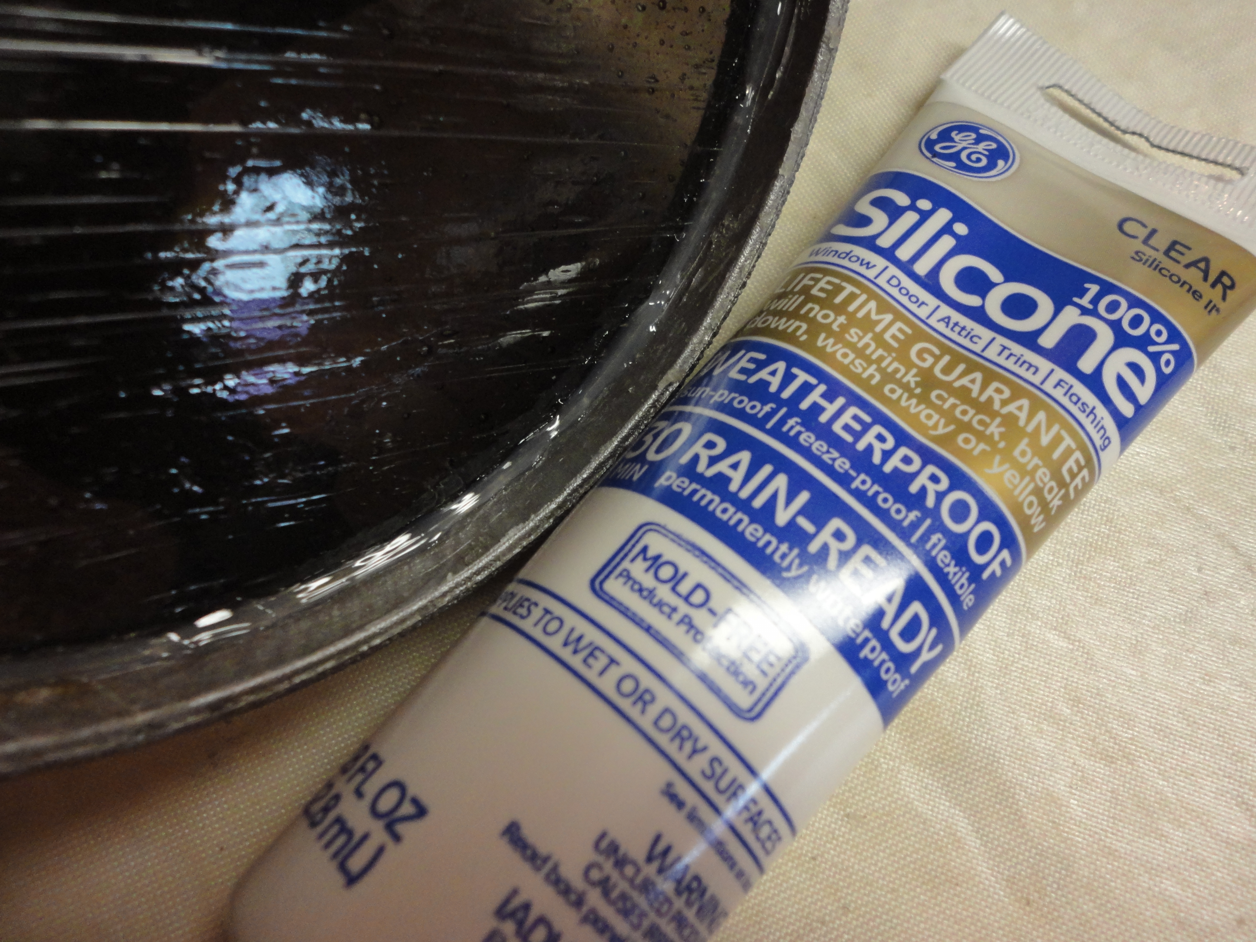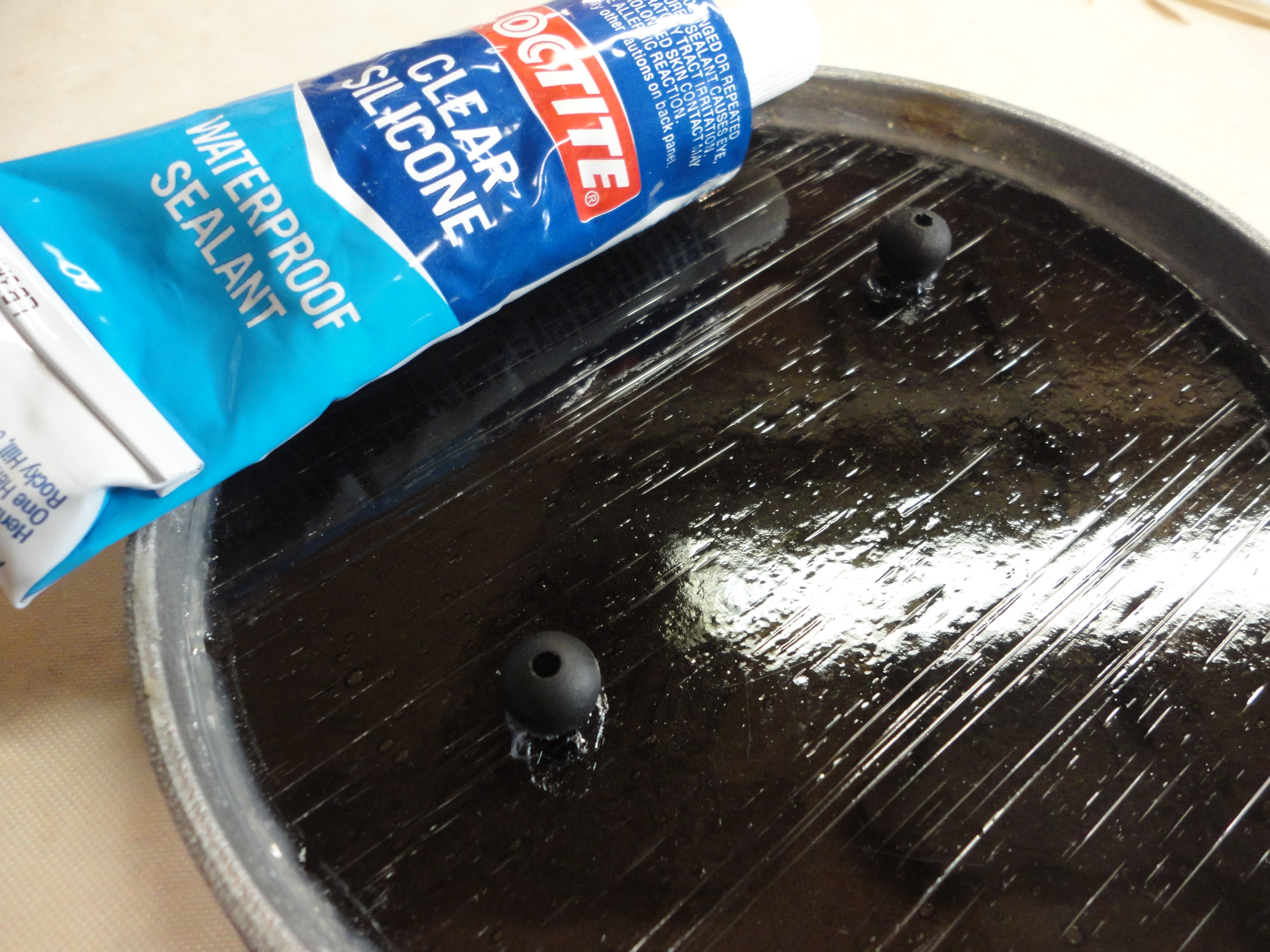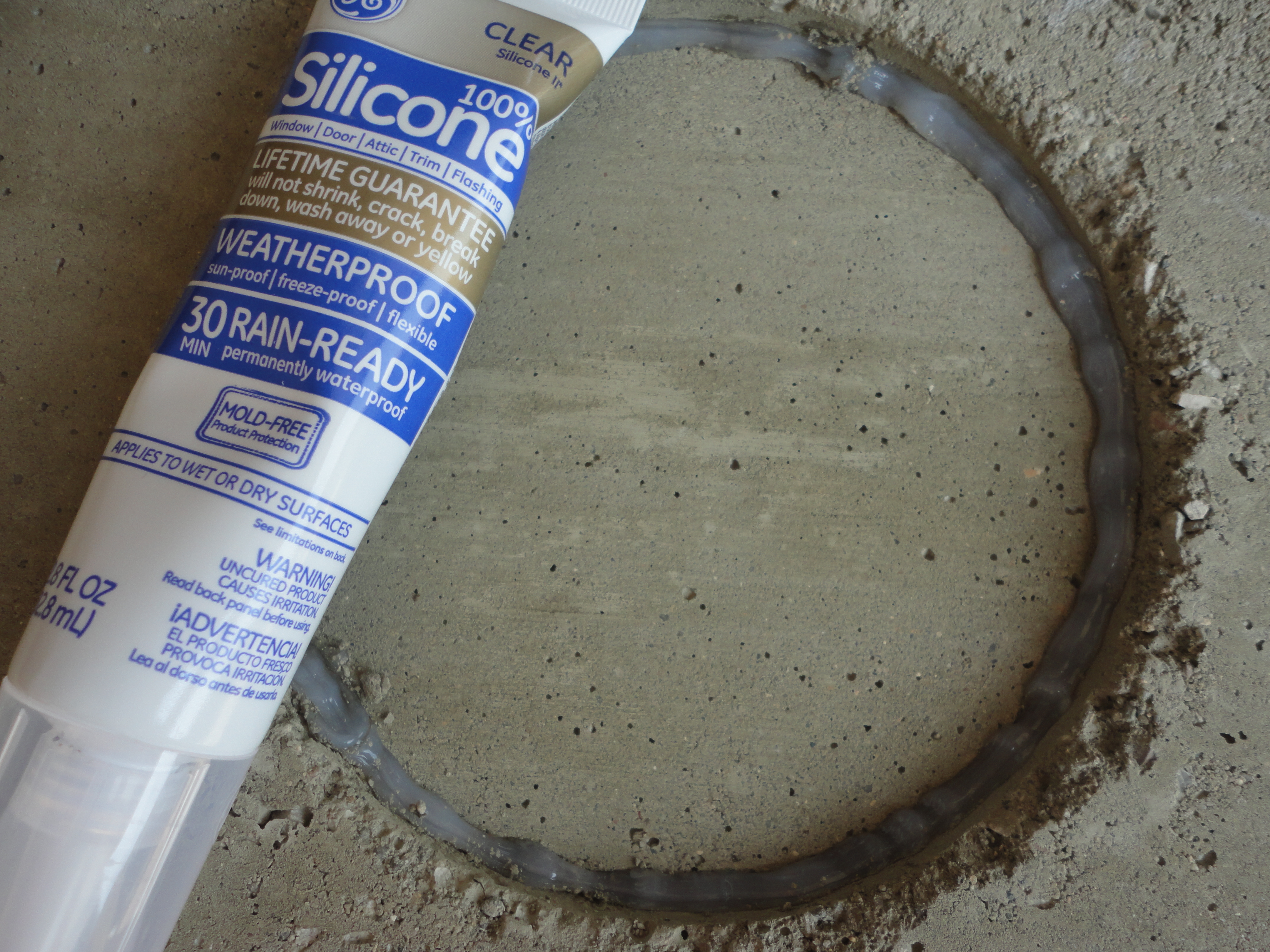 Run a thick bead of silicone around the inside circumference of the concrete circle and set the aluminum piece in place. Dry over night.