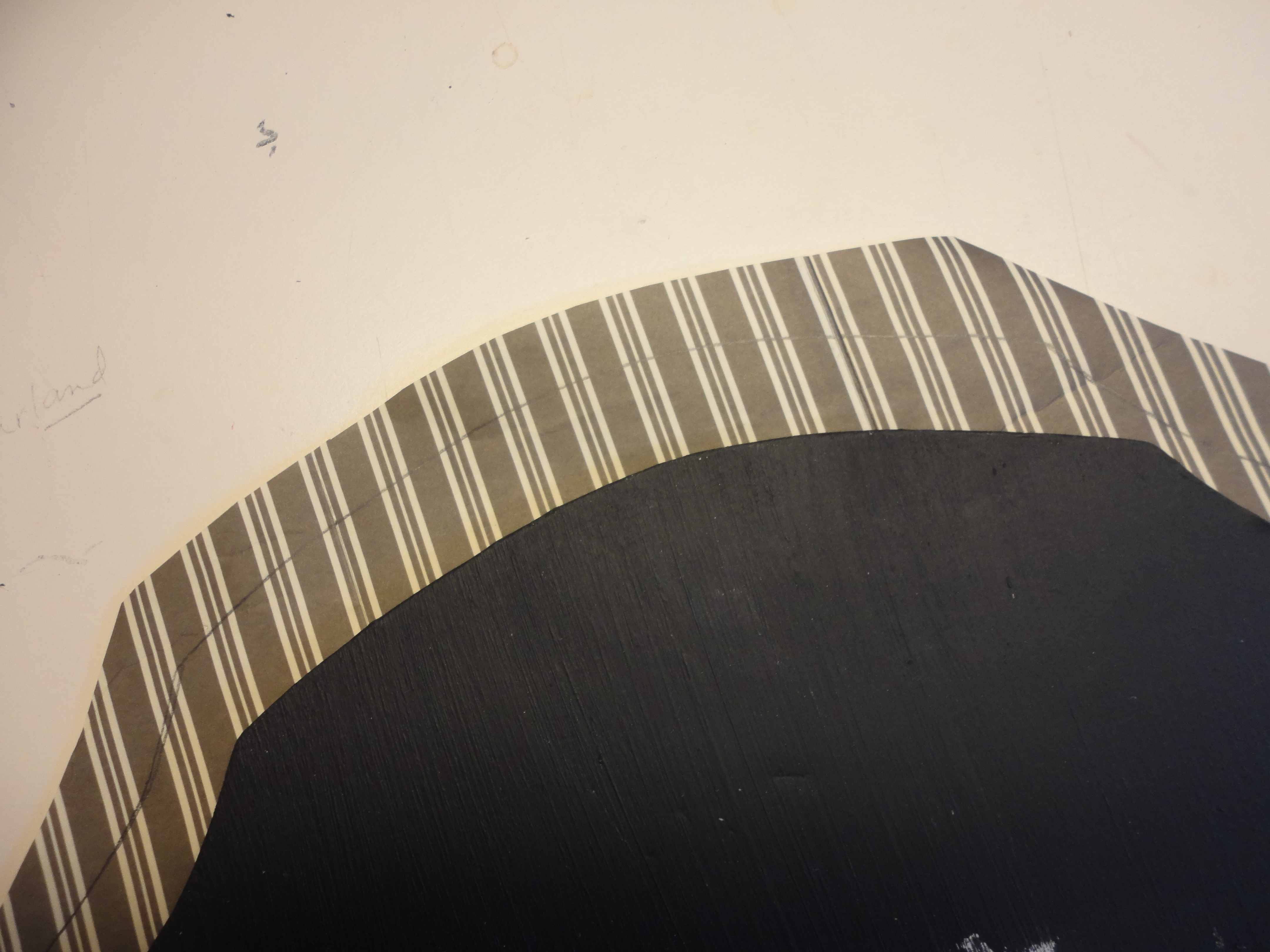 Place the foam board on top of the striped paper to center the stripes, and trace it with a pencil. Hold the paper up to a bright window, face down, and retrace your line on the back of the paper. This pattern line will help keep your stripes centered when gluing. Cut your pattern out larger, away from the line about 1 1/2″. Do not cut on the traced line.
