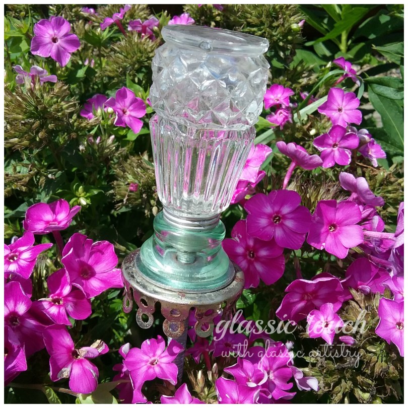 Just a reminder, glass and metal expand and contract at different temperatures, so please store them indoors during cold winter months. I stand mine in a bucket of sand, in the garage, through the winter so they don’t get iced over.