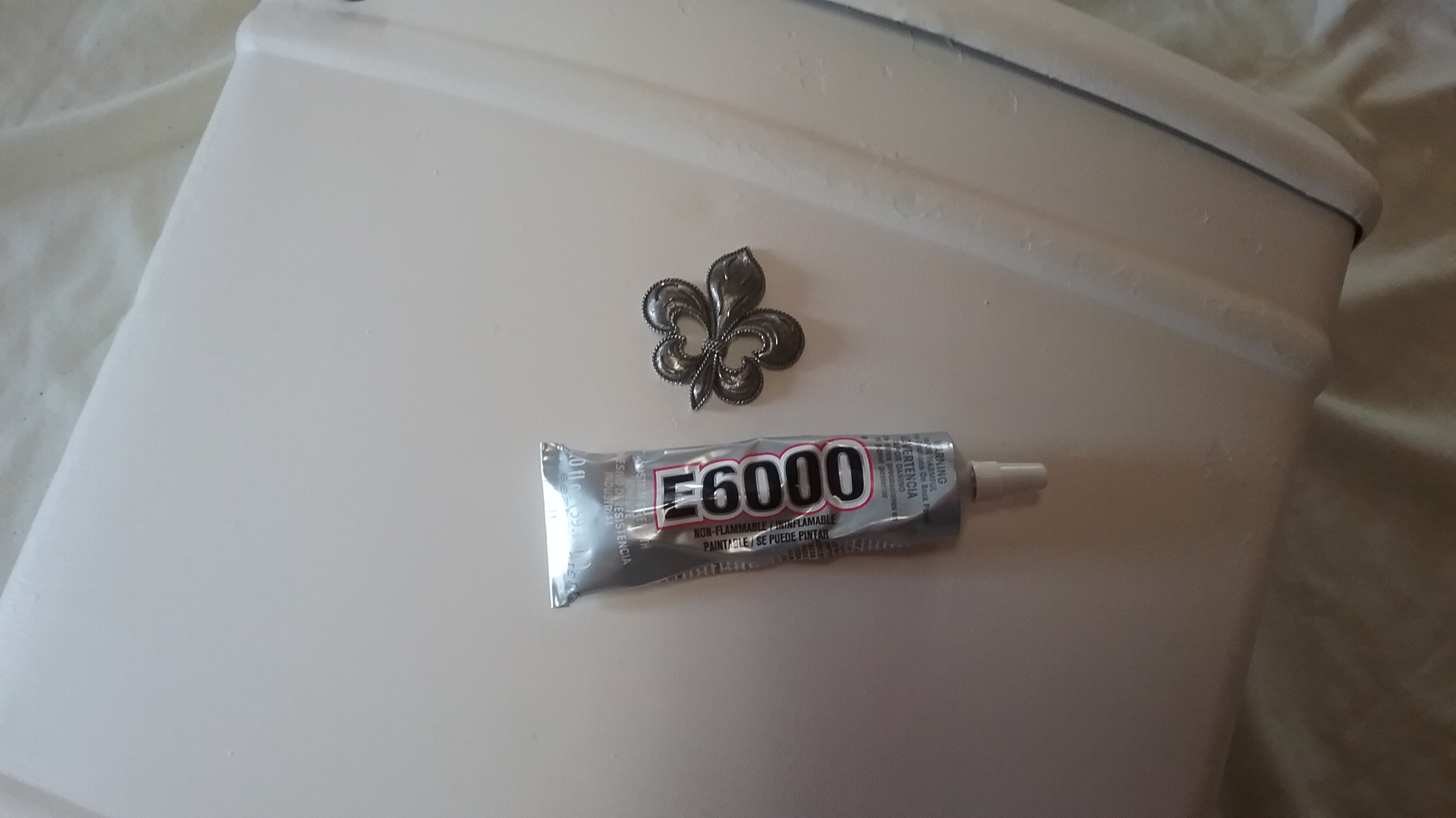 For good adhesion, I scrapped off a small bit of paint where I wanted to place the fleur-de-lis, then glued it on with a small dab of E6000.