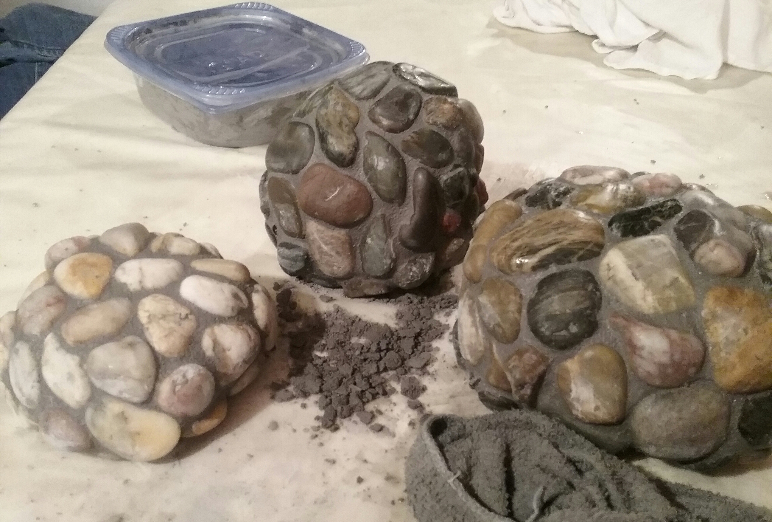 A couple years ago I made a big mosaic rock with some polished river rocks. It was meant for a show, but, found a welcome home in my garden instead. I thought a grouping of them would look cool, so I bought more rocks with the intentions of making some, but never took the time. Well, now, was the perfect time.