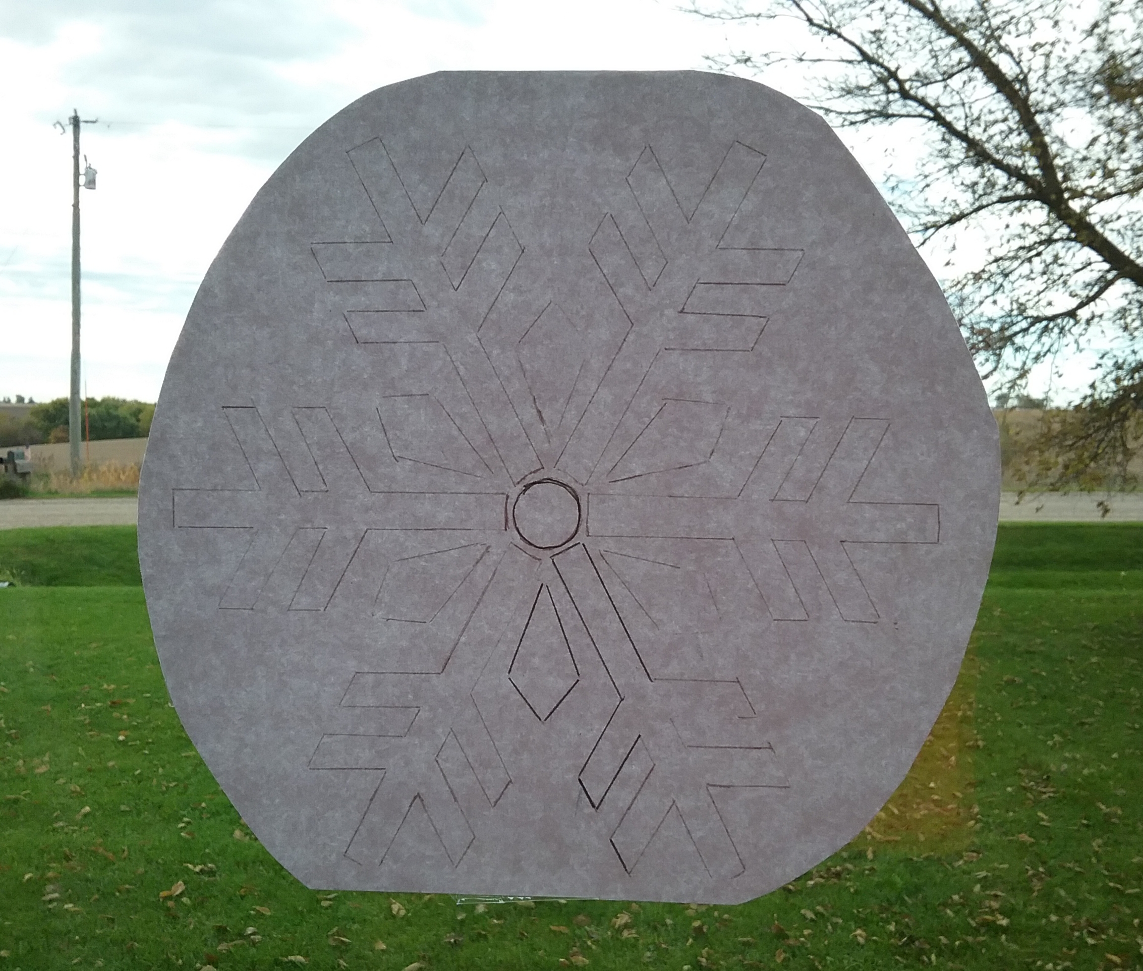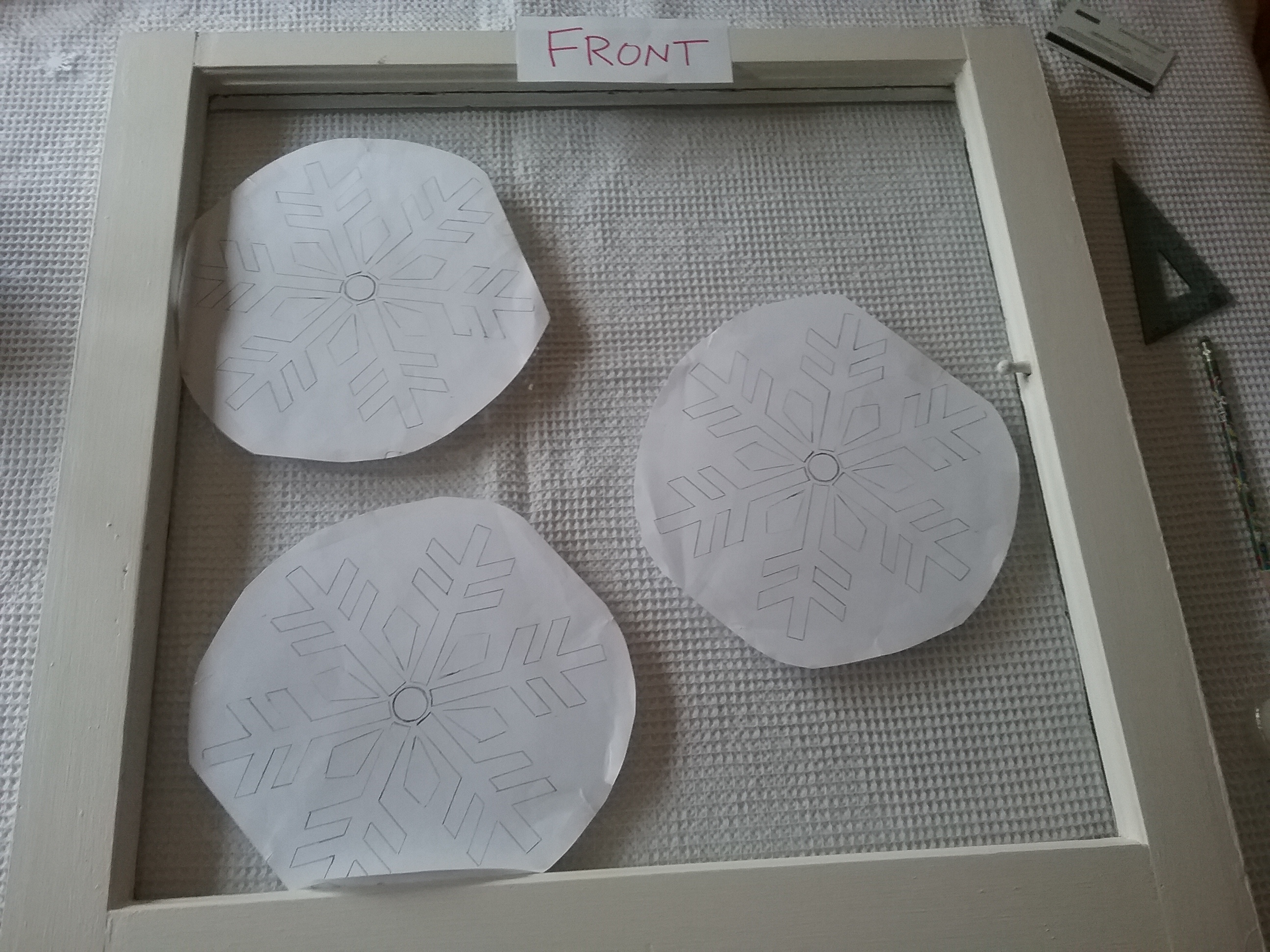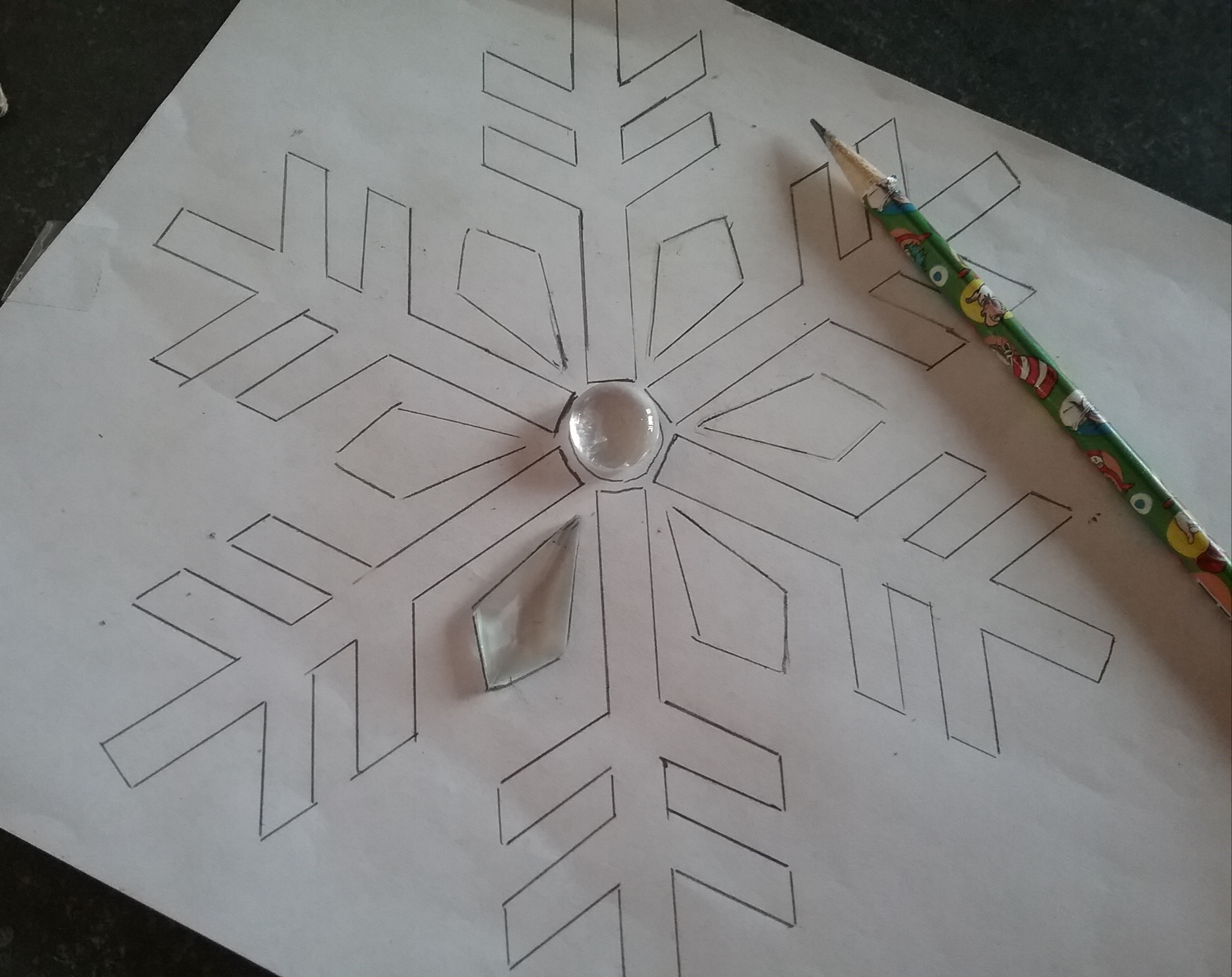 A snowflake pattern was used to redraw the design with the glass pieces I had to use.