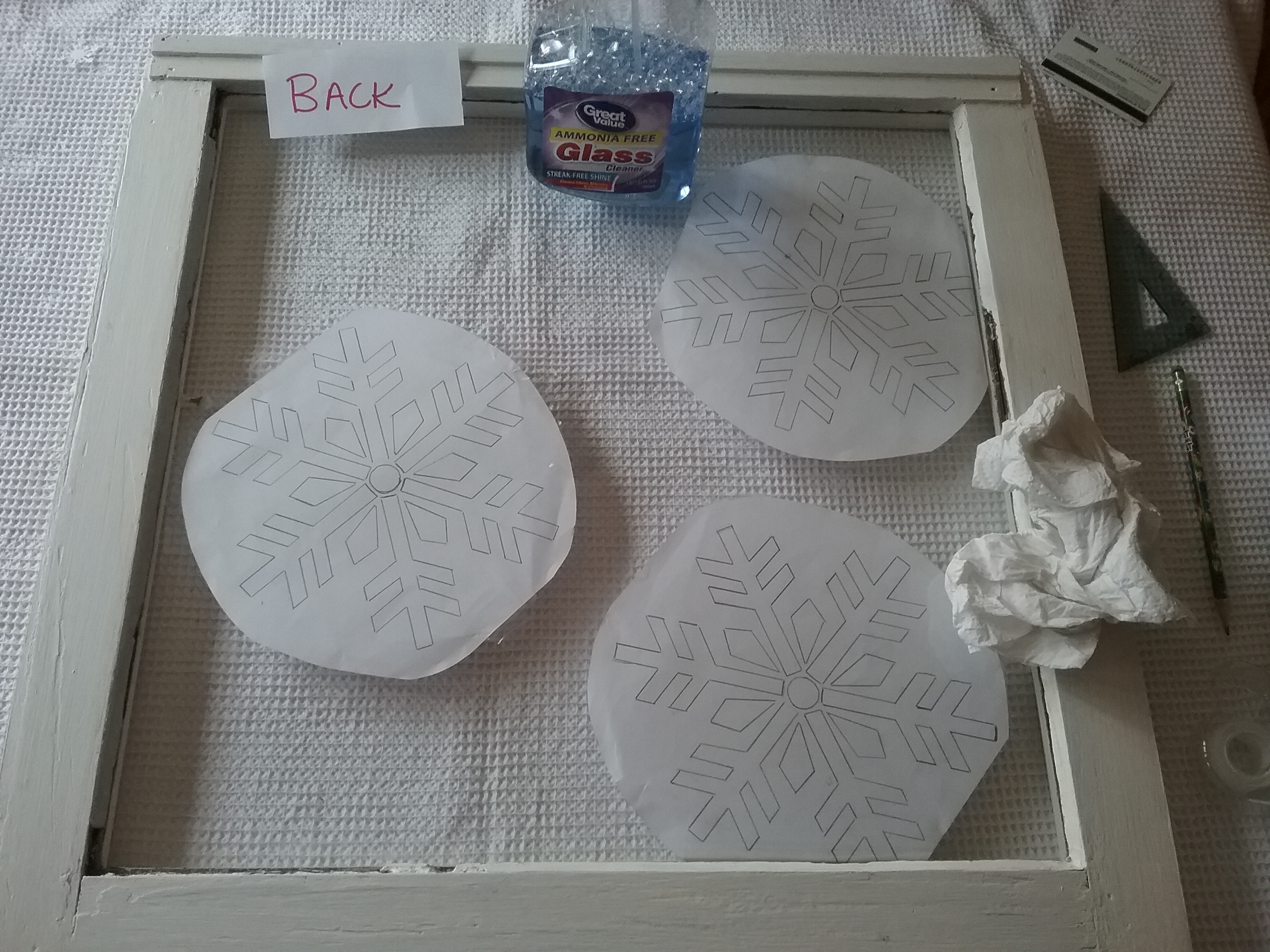 Arrange the patterns to your liking, on the front side of the window, and tape them into place.