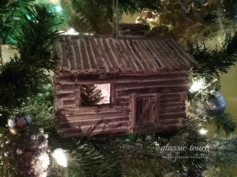 To me, a tree is just not complete without something fun for the little ones to see. Having always been intrigued by miniature houses, and still having a pile of twigs from our gatherings, I decided to try my hand at a log cabin ornament. Wouldn’t it be neat if you could peer inside of it too?