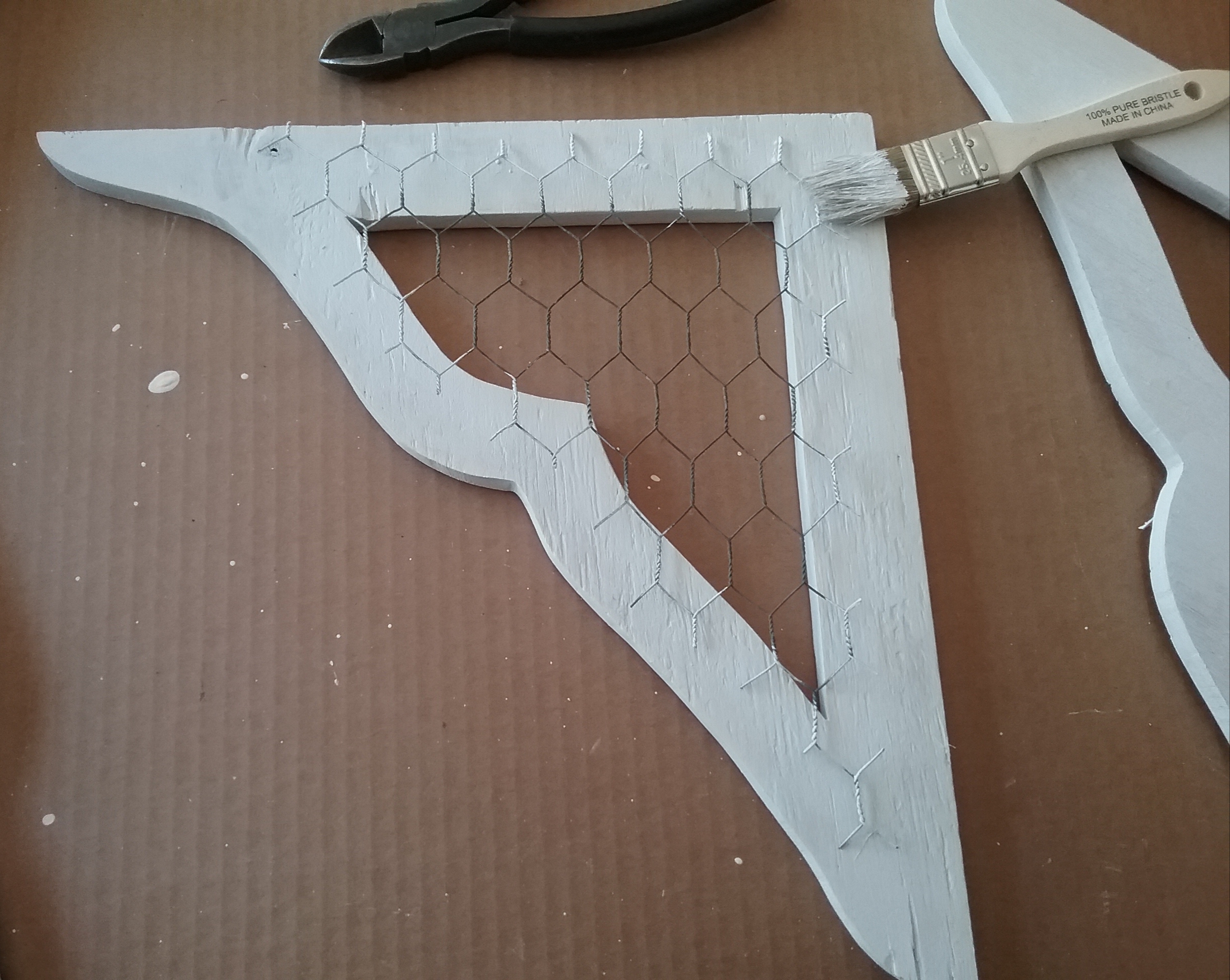 Cut two pieces of chicken wire to extend over and cover the insert area, matching the pattern in the wire.