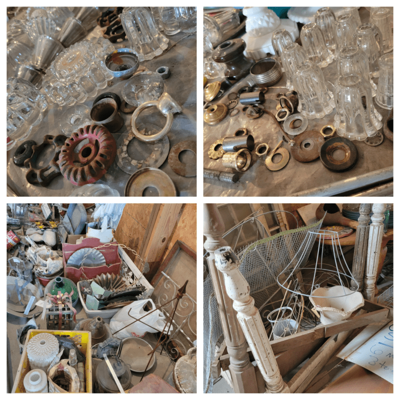 Ready, and wanting, to move on to new things, the main goal was to clear my garage of all the lamp pieces, salt/pepper shakers, and other bits and bobs I had collected over the years; offering some finished pieces and lots of parts for others to create their own.