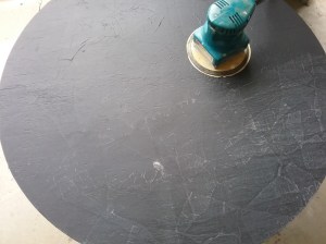Paint the outside ring. One coat of crackle, two coats of black. Let dry. Clean up any tape bleeds, erase any pencil lines and do any last minute touches, then, sand to your liking with a very fine grit sandpaper. Give the back a quick sand too. Make sure to sand smooth any glue or paint drippings around the back edge. Wipe it off with a dry, clean, soft, lint free cloth. Now is the time to personalize if you wish. If not, give it some speckling with black craft paint and a toothbrush, and it’s done.