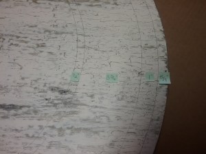 After being asked to paint a 30″ personalized clock last fall, I had my plywood cut and sanded before I thought of blogging it, so I used a piece of scrap plywood in the pictures below to show how it was drawn.