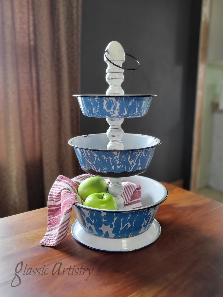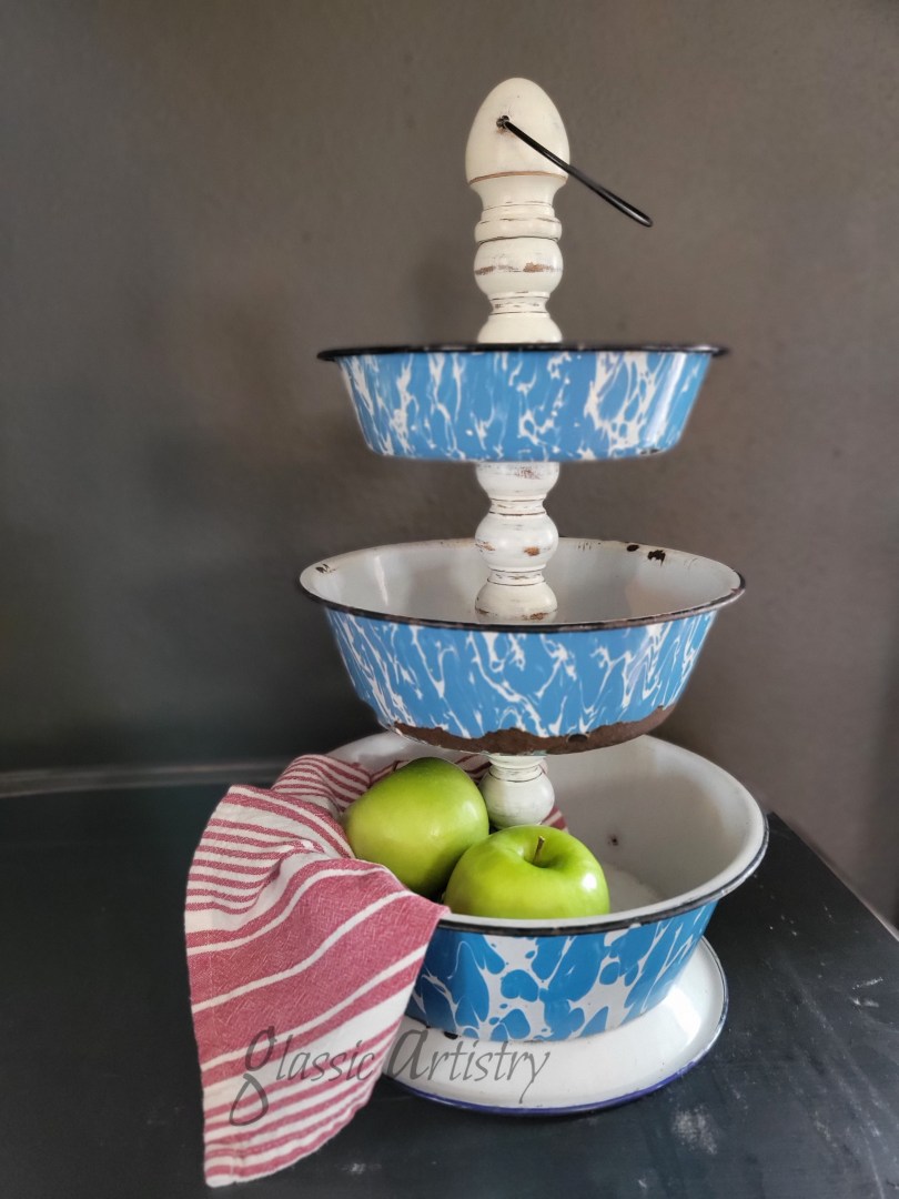 But first, I wanted to put up a quick post on a newly finished display tray created from a vintage springform baking pan, a brown ceramic insulator, metal lamp ring, wooden finial, and a zinc Ball canning lid stacked on a short length of ⅜” threaded rod. It may seem like an odd assortment of pieces, but the different materials melded together beautifully.