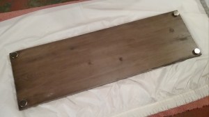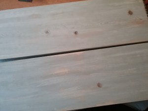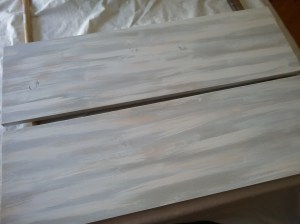 Two pieces of 1″ pine were cut for a new top and bottom, each 36″L x 11 1/4″W. Sanded smooth.